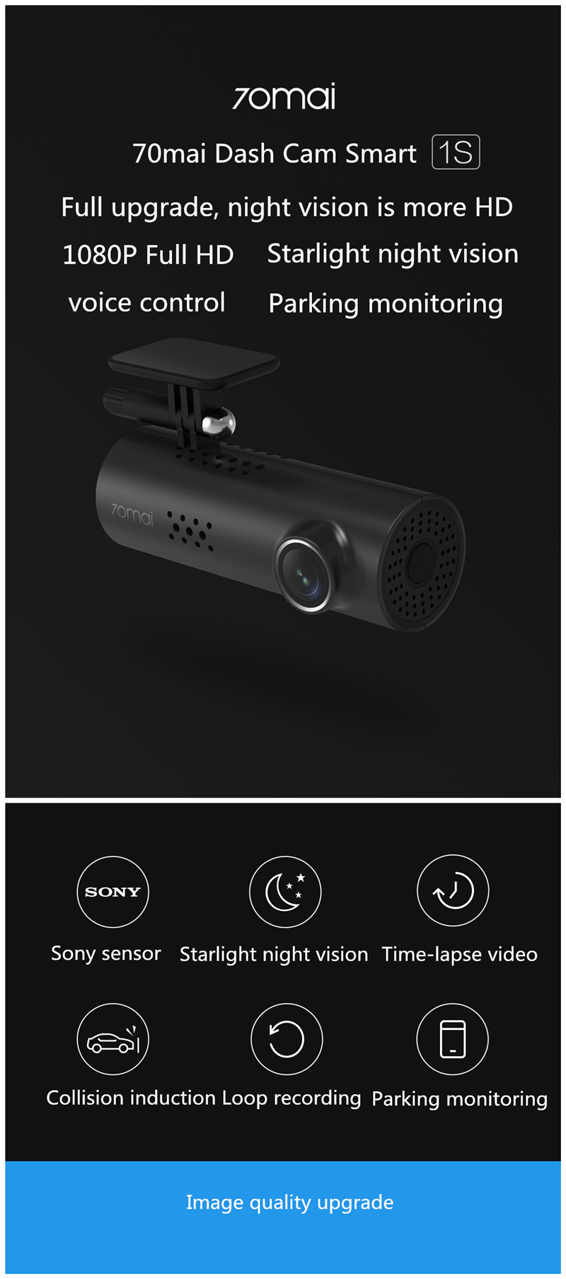מצלמת רכב המעולה 70mai 1S מבית שיאומי Xiaomi, מצלמה איכותית ביותר בעלת התכונות האיכותיות ביותר.