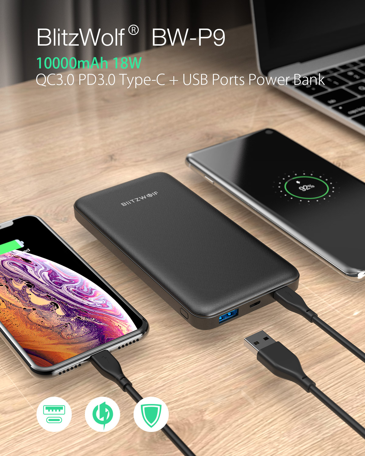 מטען נייד BlitzWolf BW-P9 בנפח 10,000mAh כולל טעינה מהירה 18W QC3.0