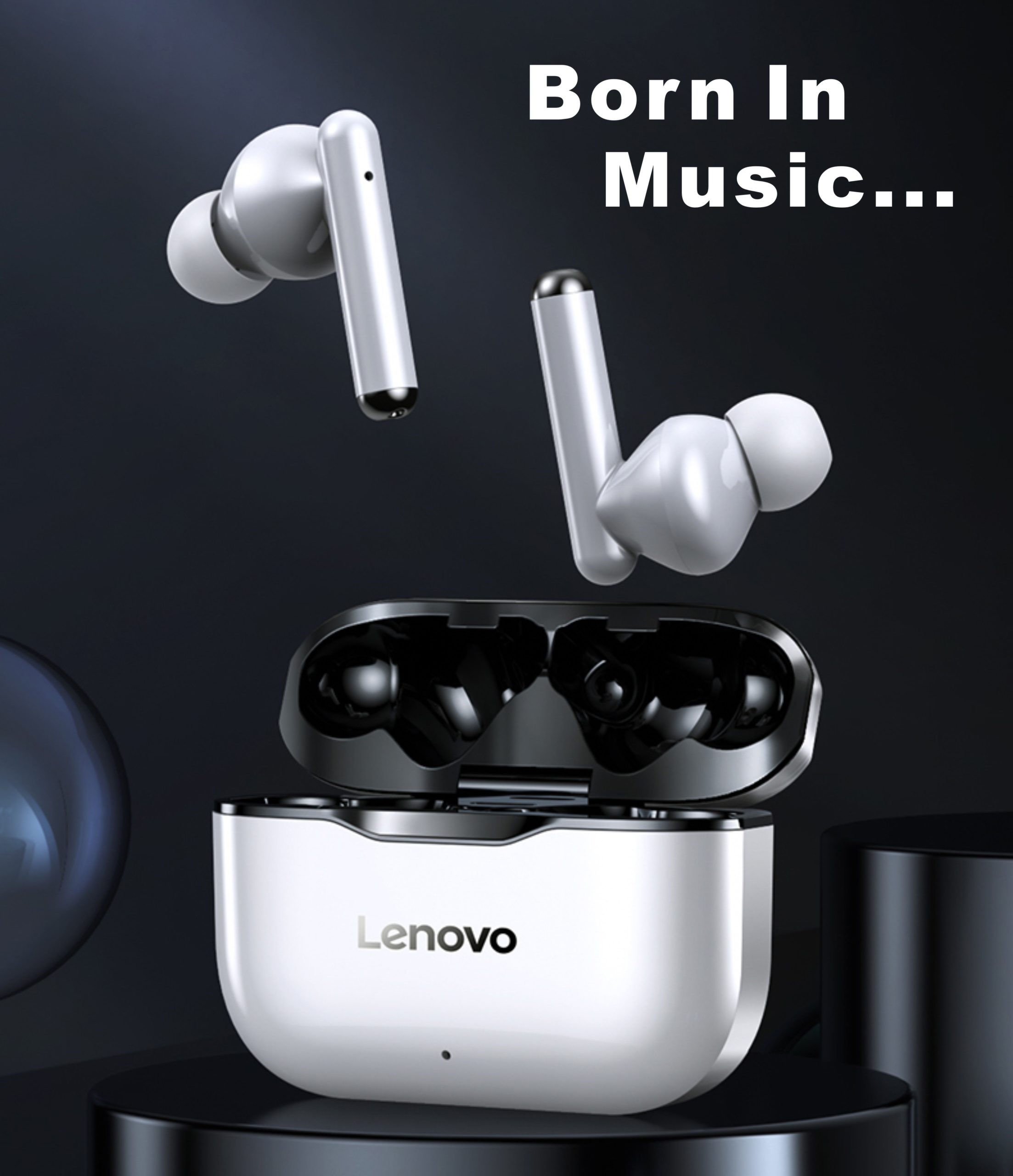 אוזניות בלוטוס אלחוטיות True Wireless מבית Lenovo LP1 TWS, גרסת Bluetooth 5.0 הכוללת מיקרופון כפול והגנה נגד רטיבות וזעה בתקן IPX4.