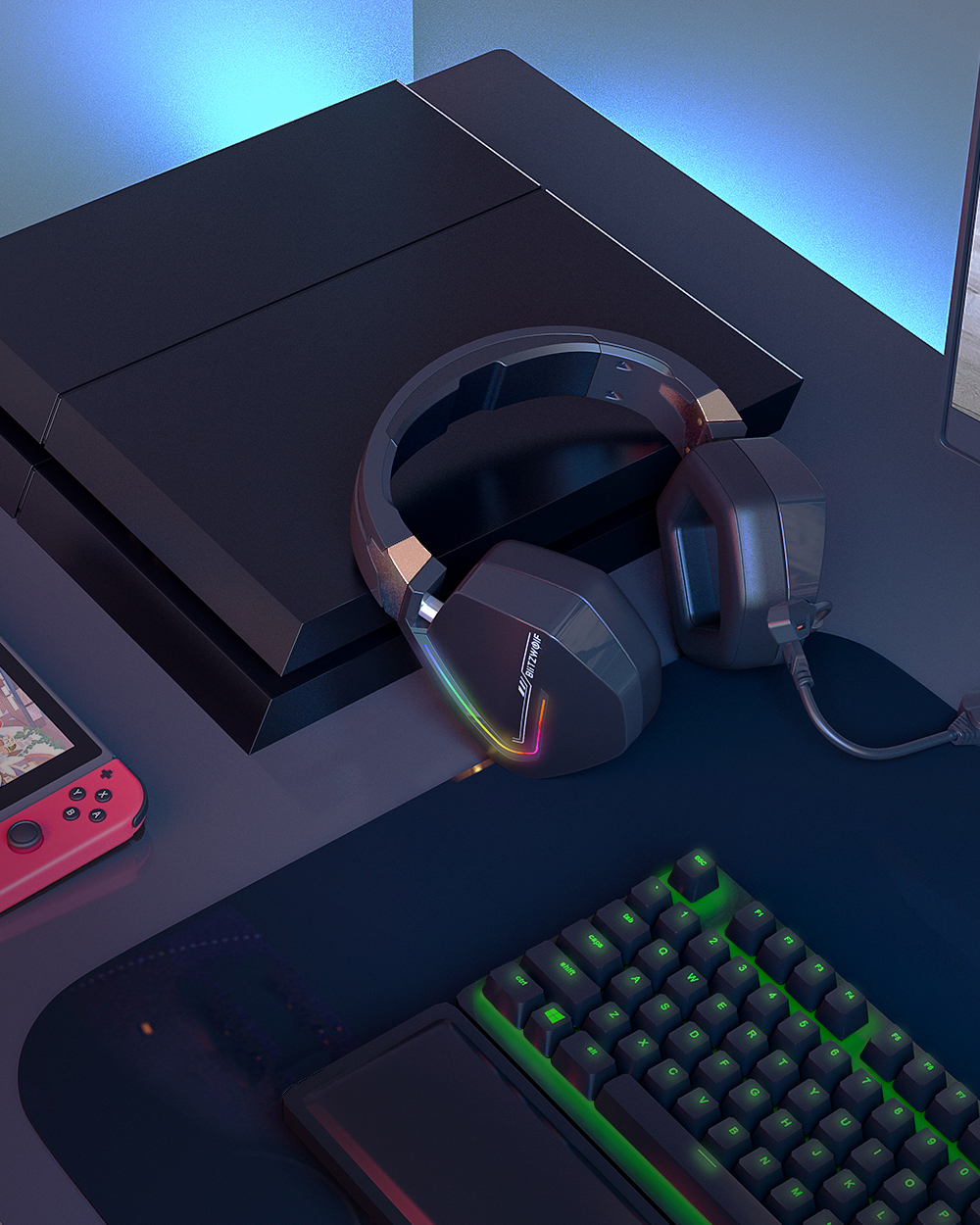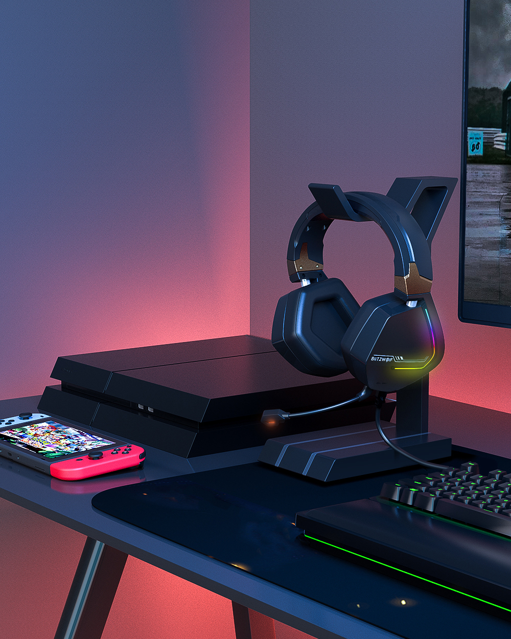 אוזניות גיימינג מבית BlitzWolf® BW-GH2 עם תאורת לד צבעונית RGB