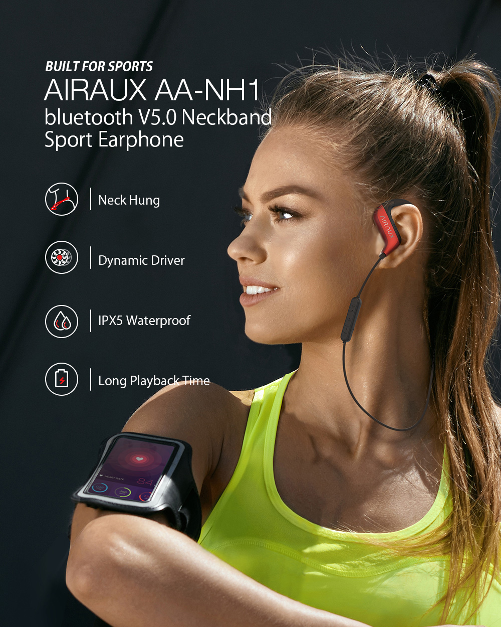 אוזניות ספורט בליצוולף BlitzWolf® AIRAUX AA-NH1 עם חיבור bluetooth 5.0 עם עמידות לרטיבות בתקן IPX5 וסוללה המספיקה ל4 שעות שימוש.
