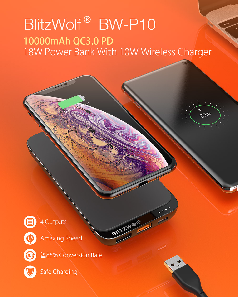 הסתייםמטען נייד עם טעינה אלחוטית BlitzWolf® BW-P10