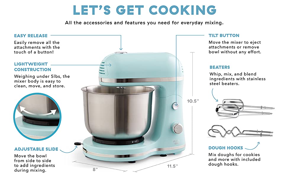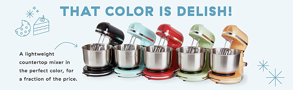 מיקסר Delish by Dash לשימוש ביתי בגודל קומפקטי, גובה 26.5 ס"מ בלבד, מגיע ב5 צבעים שונים לבחירה.